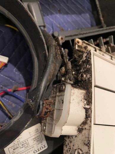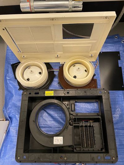 構造的に循環ファンと換気ファンに分かれており、降ろして分解清掃しないとやり残しが出てきます。TOTO三乾王は10年以上の機種も多くよくご依頼いただきます。