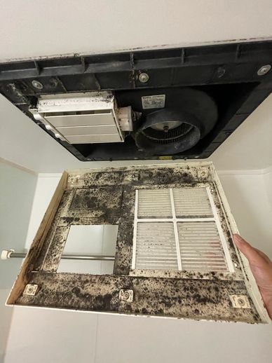 TOTO三乾王は分解掃除をしていないとカビだらけになります。浴室は特にカビが生える条件が整っています。運転するたびにカビのシャワーを浴びているかもしれません。TOTO三乾王と繋がるダクトも清掃いたします。
